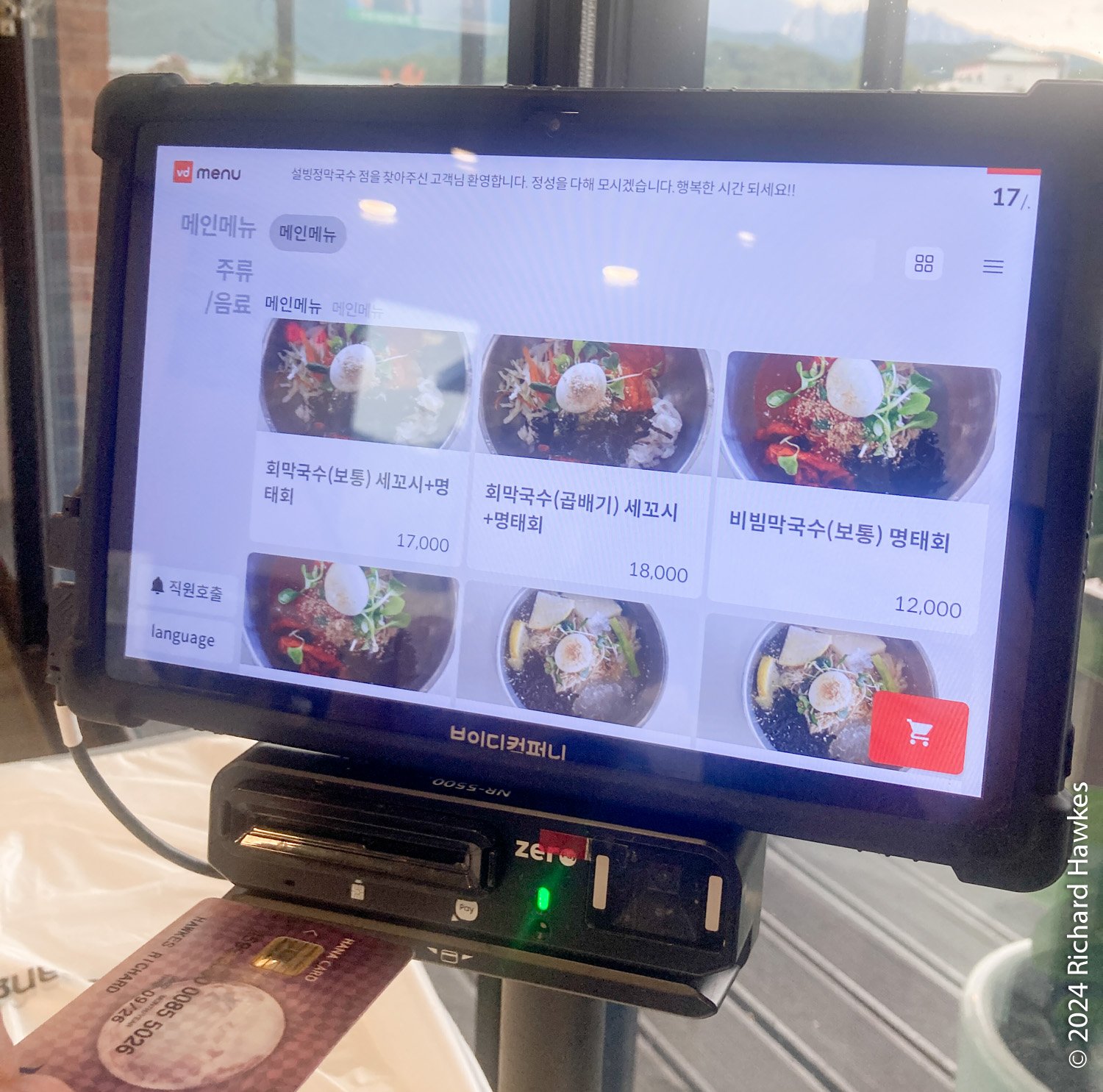 Nearby was a makguksu restaurant. Places close relatively early out here, so best to get it when you can! I drove over and parked at Seolbingjeong Makguksu (속초설빙정막국수) and was the only one there. The food was nice and was delivered by robot.