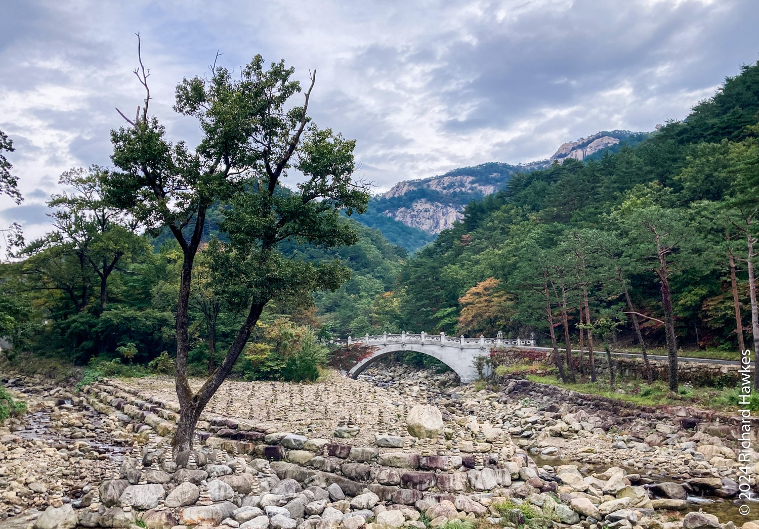 I got some date tea at Seolhyan (설향), a teahouse I’d visited with my parents in 2022. It’s a lovely spot next to the wide riverbed. Then I walked to the restaurant area and had some bibimbap and preeped for my next hike of the day.
