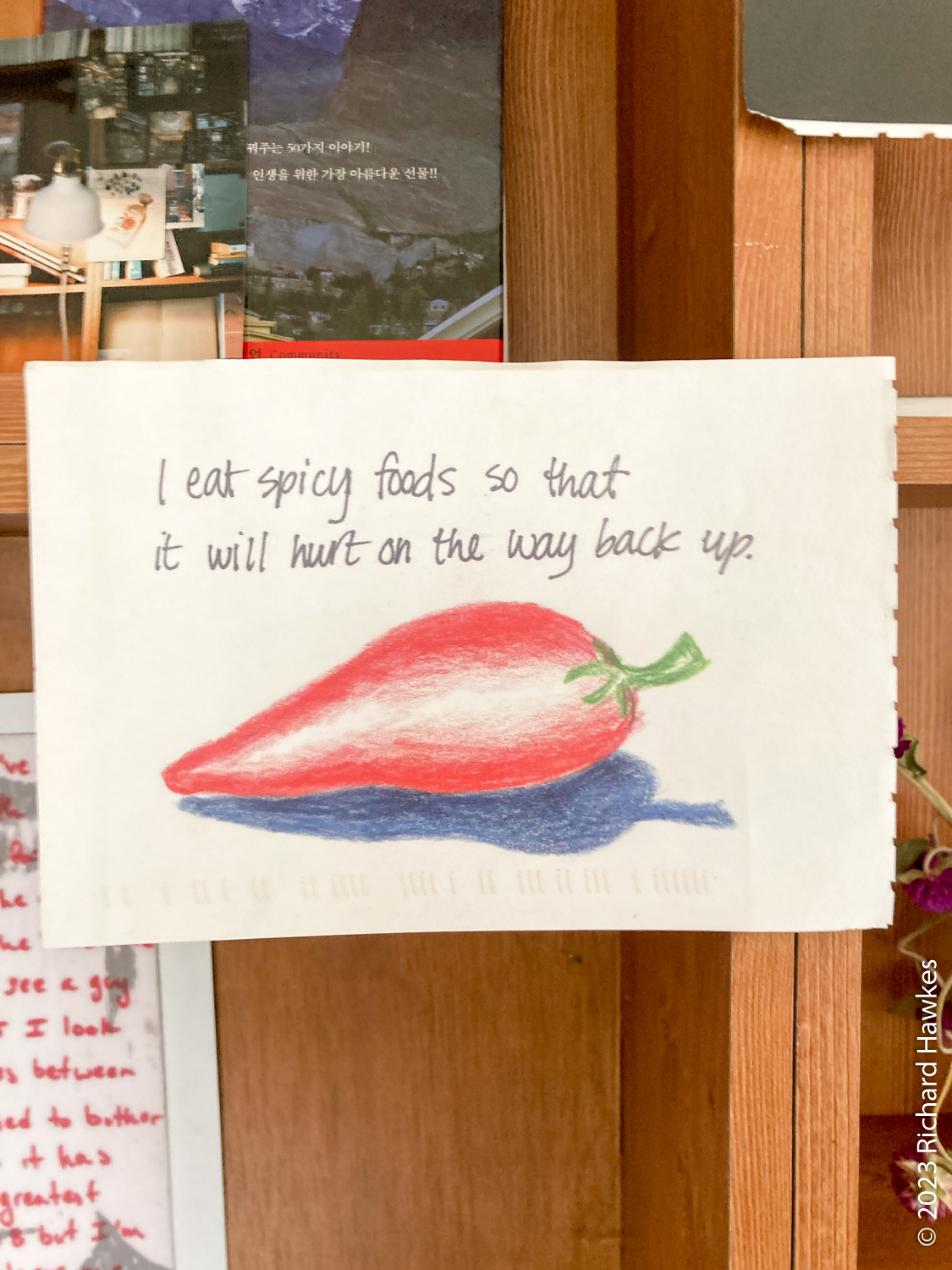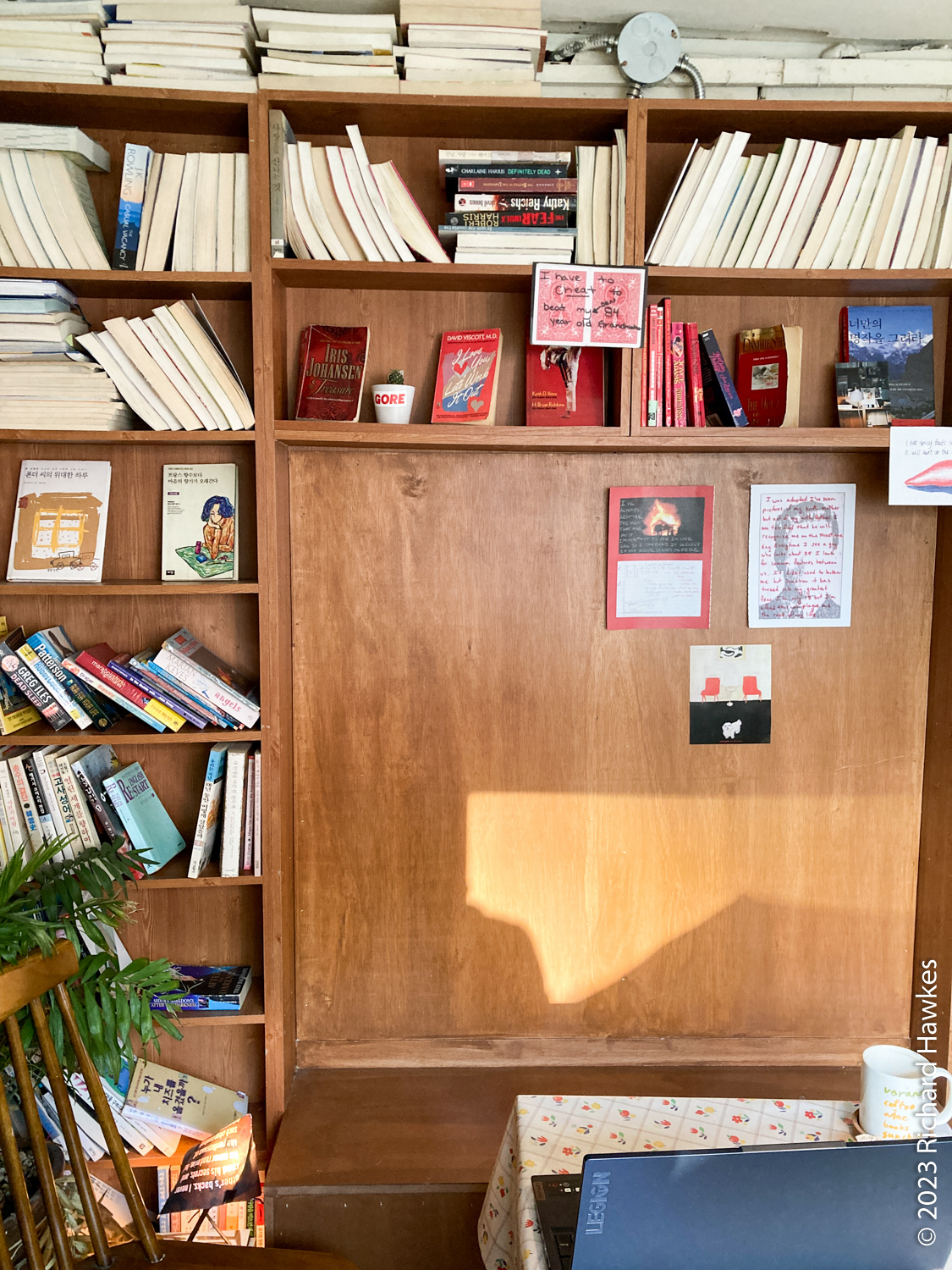 | Features | Traditional Korean house (hanok). Cute, cosy interior. Books. Quiet. Some food. |