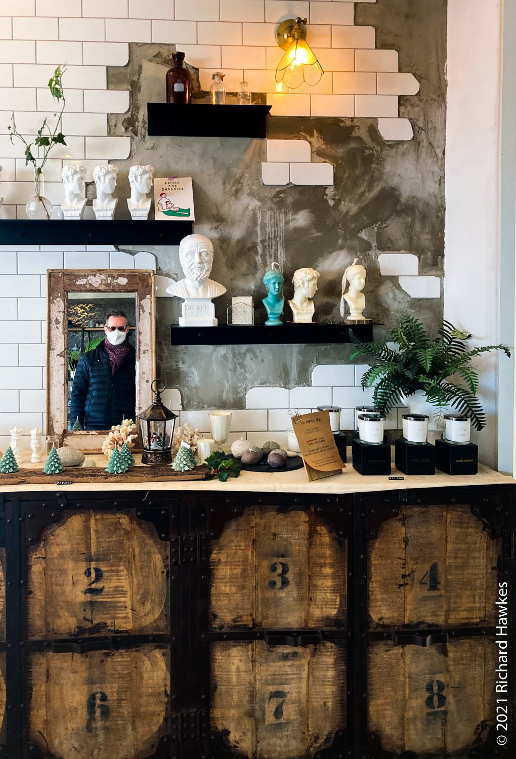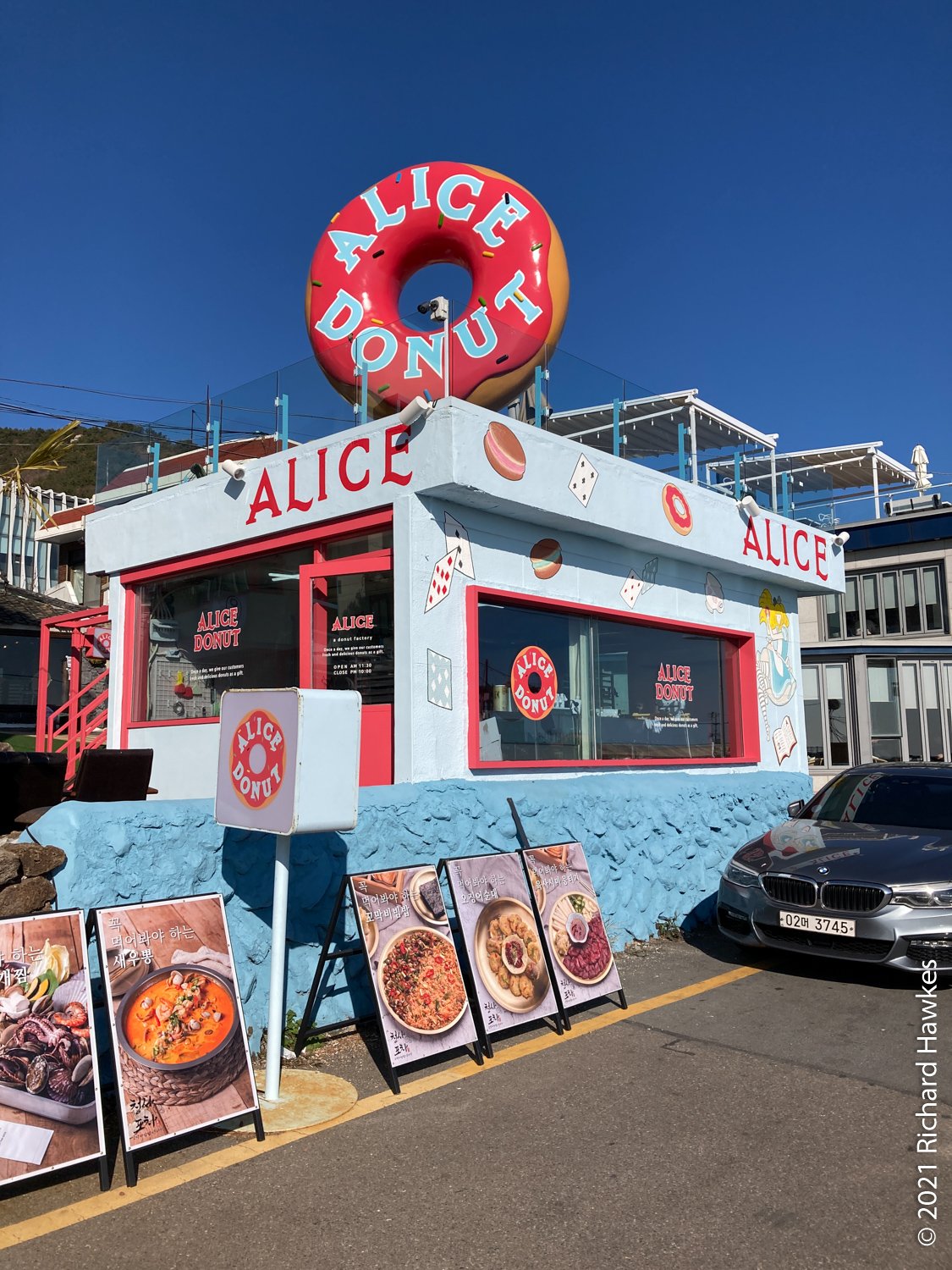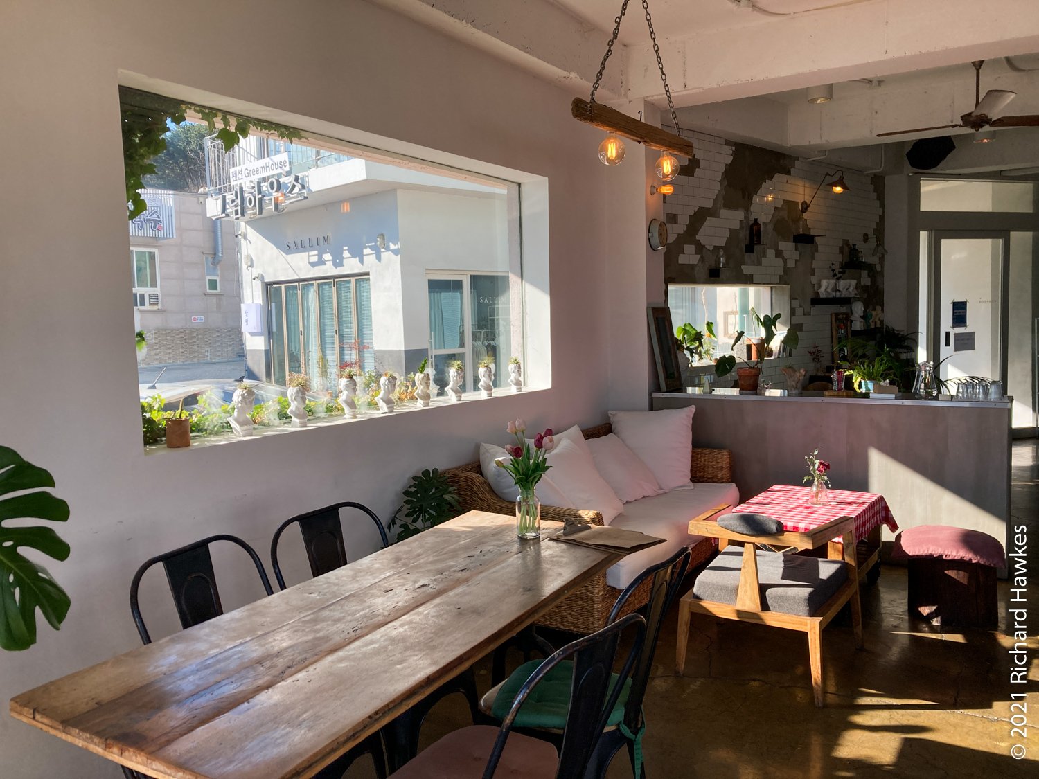 We walked to Violet Atelier (비올레아뜰리에) a brunch cafe in a new building overlooking the sea. We enjoyed the view, the sun streaming through the windows and the photo ops! The food and coffee was great.