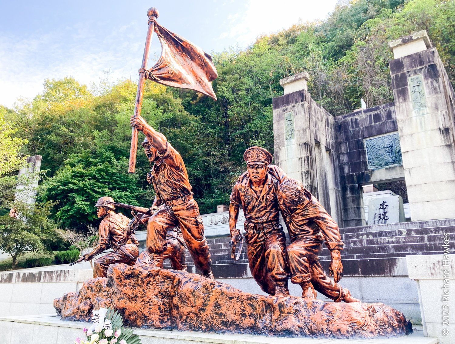 At the car park, I found a large war memorial with sculptures of soldiers and civilians. I also checked out the park’s campsite. Then I set off for Jinju and the final part of my trip.