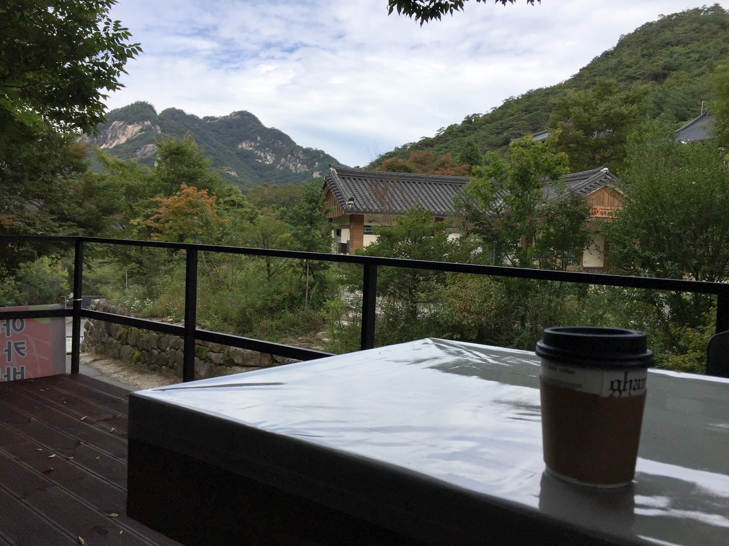 Next morning, I parked on the main road near Deogjusa temple (덕주사) and started hiking. I stopped off at the temple and found a sweet spot for a coffee. Lovely!