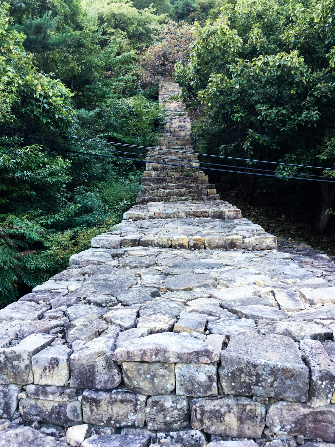 Once I arrived and got set up, I cycled north to the ‘nearby’ Chungju lake (충주호). A really nice place, well worth visiting again to cycle around or hike. The waters are a really great green colour and there were a few pleasure boats moving around. I also explored part of Deokju Mountain Fortress where there were remains of what was probably an awesome wall. I walked up the wall as much as I could before it got too rocky. It looks like it goes on for a while. Cycling was nice~ish; roads aren’t so wide, so of course, be careful!
